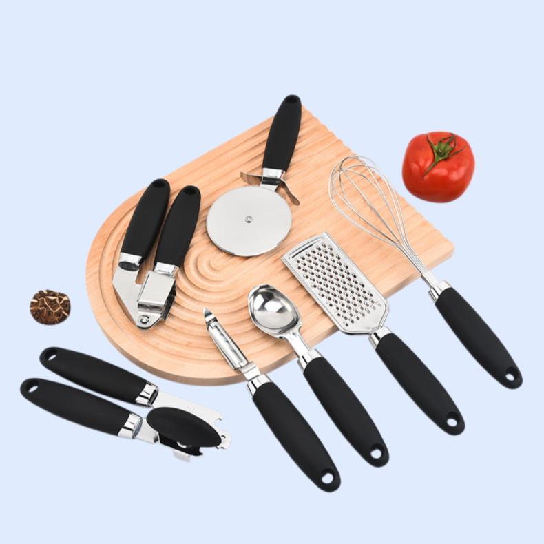 8-piece stainless steel kitchen tool set, durable, rust-resistant, easy to clean, ergonomic handles, includes essential utensils for daily cooking, suitable for all cookware types.